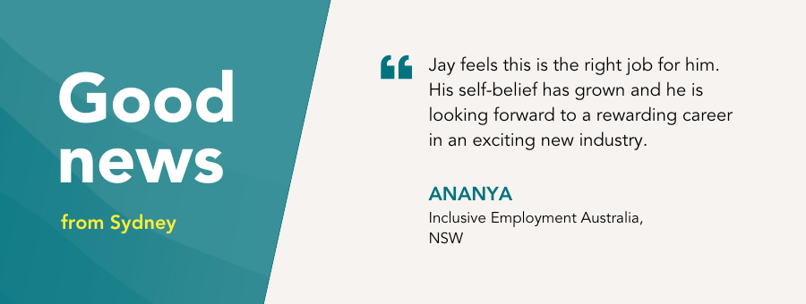 “I supported Jay to understand his capabilities and provided career guidance to suit his needs and interests,” said Job Coach, Ananya.
